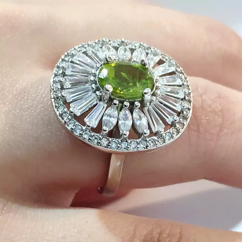 انگشتر زبرجد زنانه بسیار شیک با رکاب نقره آب رادیوم دار و مرصع کاری بسیار زیبا