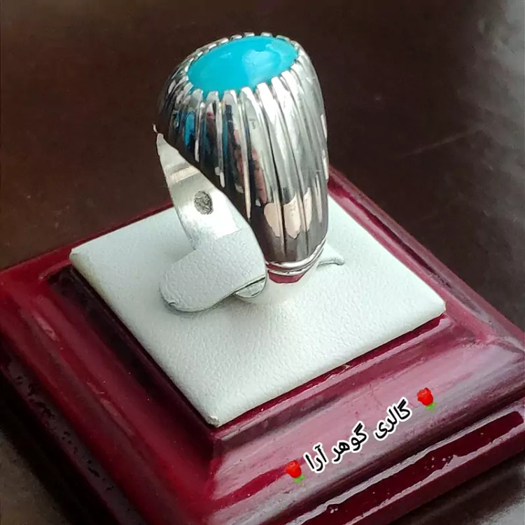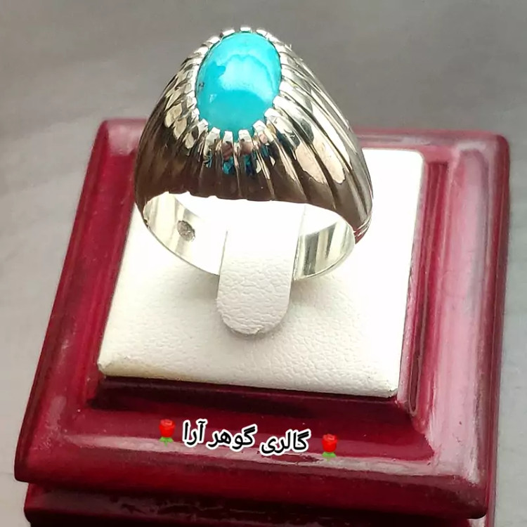 انگشتر فیروزه نیشابوری عجمی اعلا با رکاب دست ساز سفارشی فیلی مدل خیاری