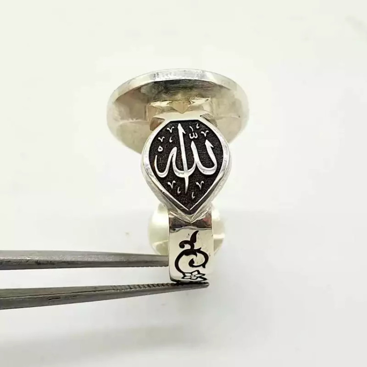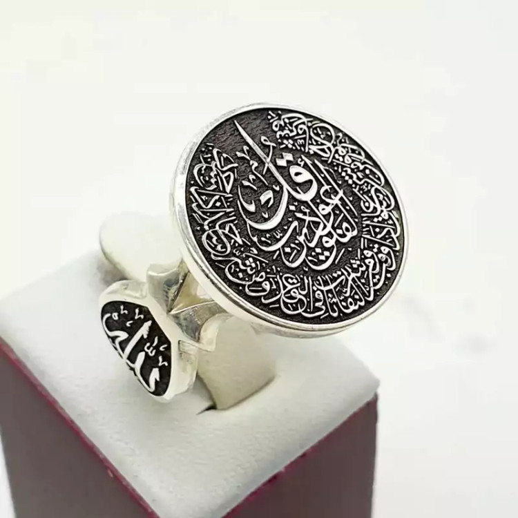 انگشتر تمام نقره سیاه قلم با قلمکاری فوق العاده زیبا ، دقیق و منظم سوره مبارکه فلق