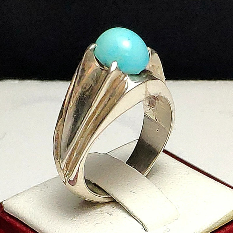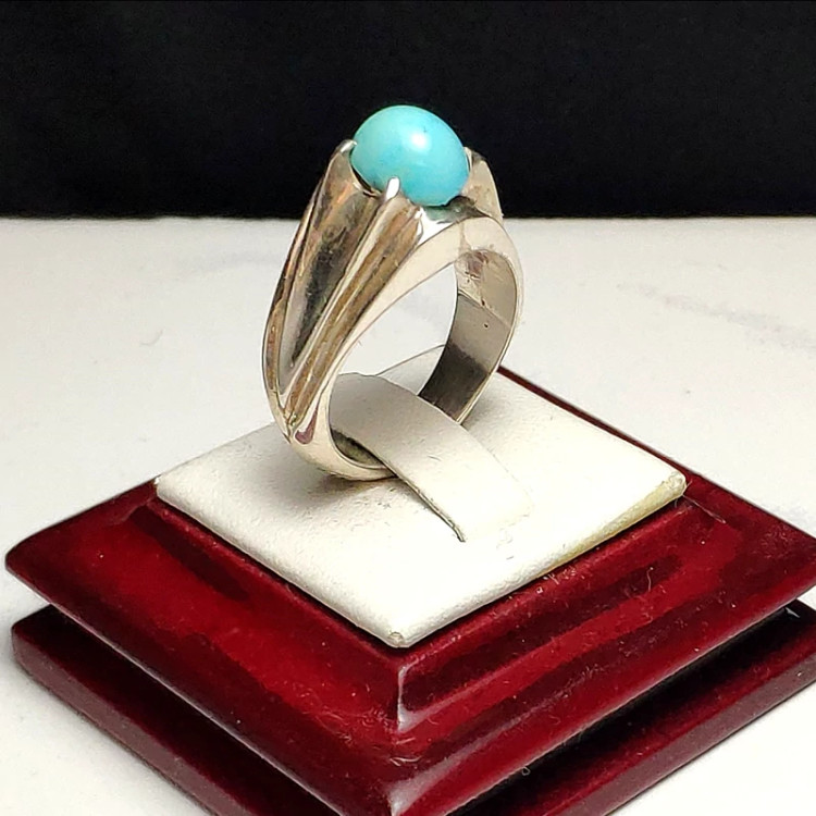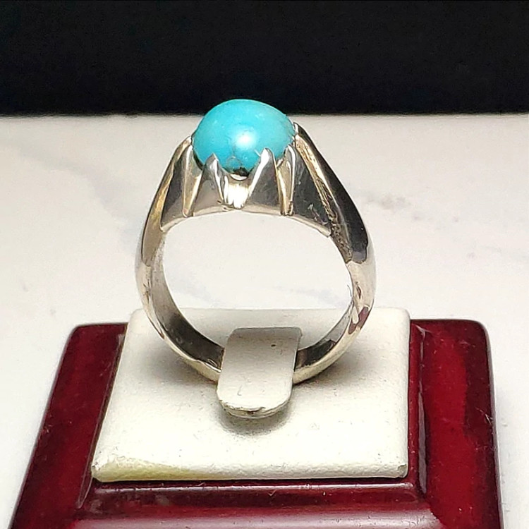 انگشتر فیروزه نیشابوری عجمی خوش رنگ و طبع با رکاب دست ساز