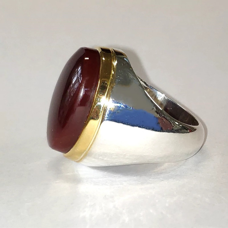🌿 بسم الله الرحمن الرحیم 🌿 🌹 گالری گوهر آرا تقدیم میکند🌹 ✅ انگشتر عقیق سرخ یمنی اعلا 🔹 رکاب دست ساز مدل فیلی سفارشی 🔸عیار نقره در ساخت تمام محصولات گالری گوهر آرا 925 میباشد. 🔹سایز = 67 🔸وزن = 24 گرم 🌺با محصولات ما زیباتر شوید 🌺 🌹گالری گوهر آرا🌹 ♦️اصالت کالا ، قیمت مناسب♦️ ➕ ♨️ تخفیف ویژه ♨️