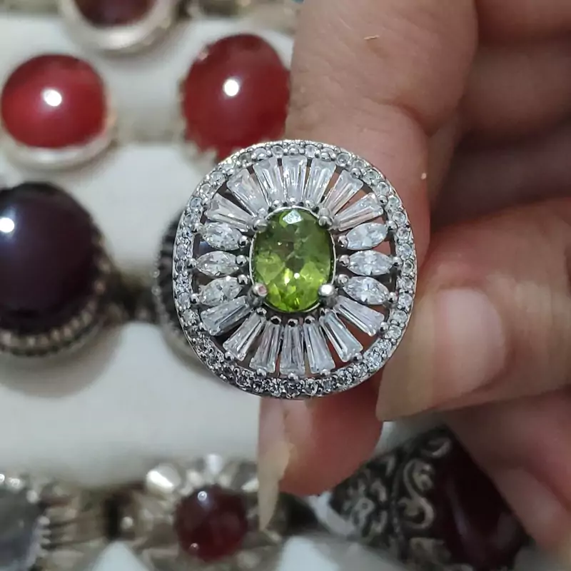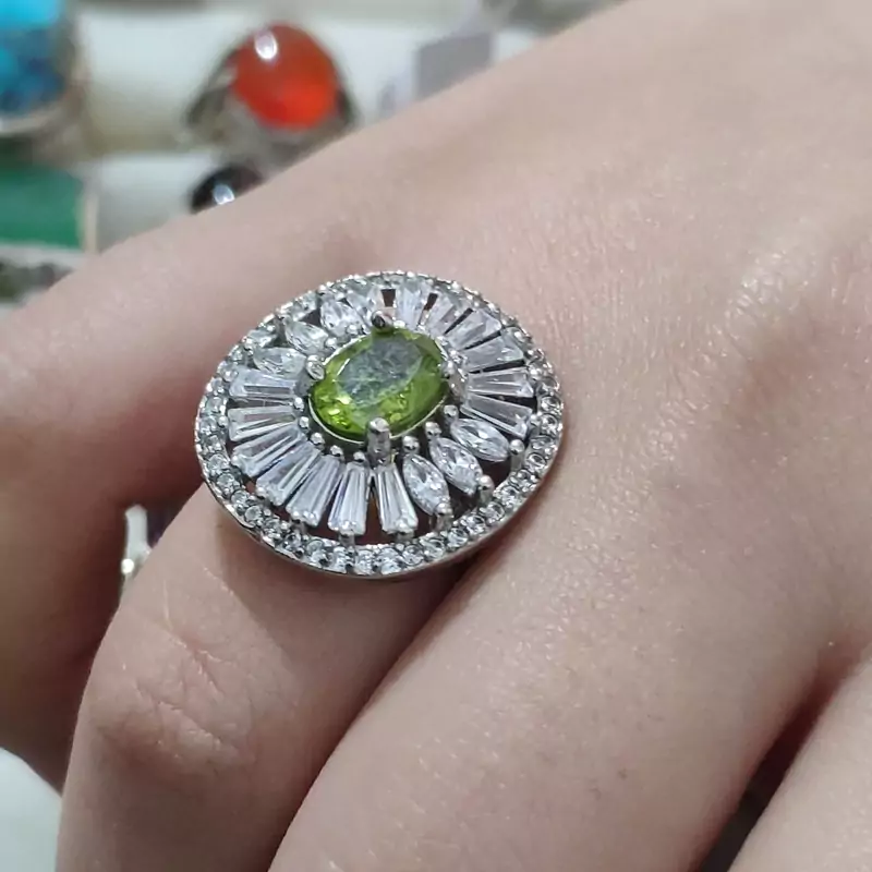 🌿 بسم الله الرحمن الرحیم 🌿 🌹 گالری گوهر آرا تقدیم میکند🌹 ✅ انگشتر زبرجد زنانه بسیار شیک و منحصر بفرد 🔹رکاب نقره مخراجکاری شده با عیار 925 و آبکاری شده با رادیوم 🔸سایز = 57 🔹وزن = 5.93 گرم 🌺با محصولات ما زیباتر شوید 🌺 🌹گالری گوهر آرا🌹 ♦️اصالت کالا ، قیمت مناسب♦️ ➕ ♨️ تخفیف ویژه ♨️