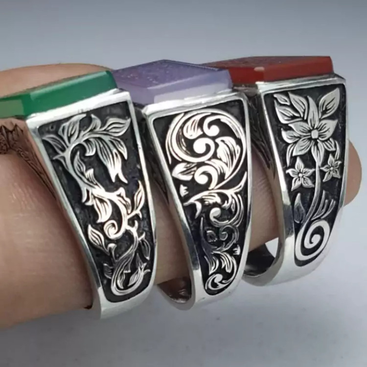 انگشتر عقیق سرخ خطی با رکاب دست ساز سفارشی و قلمکاری بسیار زیبا و دقیق ، مدل فیلی اسپرت فوق العاده جذاب