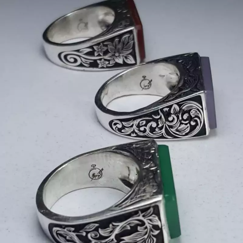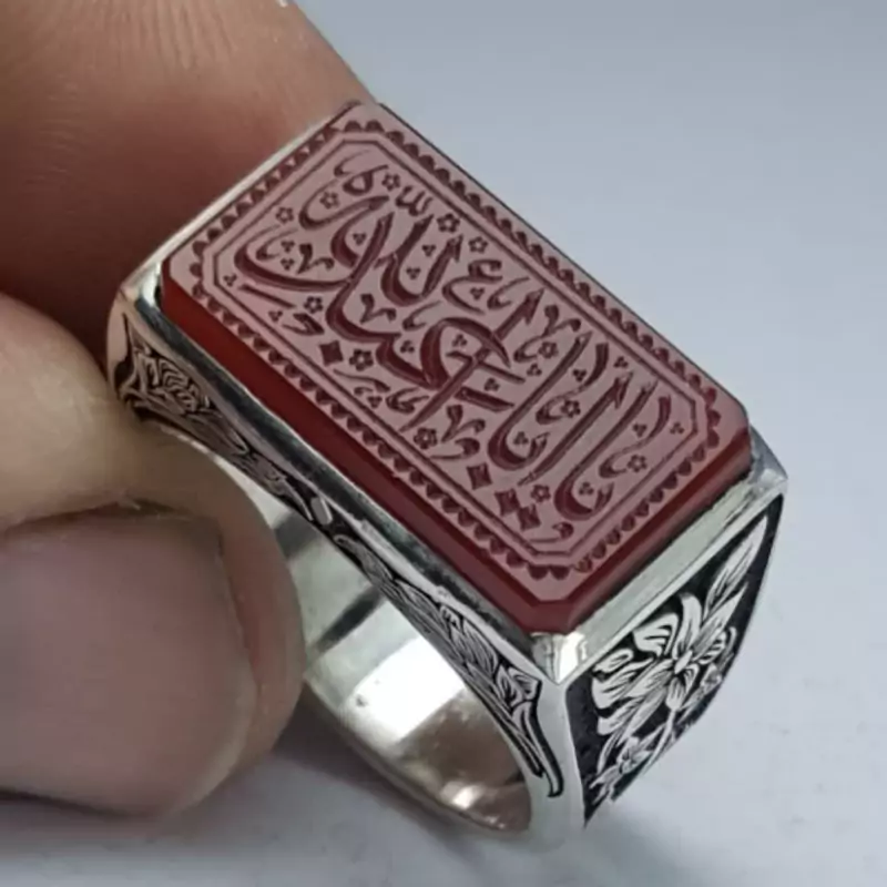 انگشتر عقیق سرخ خطی با رکاب دست ساز سفارشی و قلمکاری بسیار زیبا و دقیق ، مدل فیلی اسپرت فوق العاده جذاب