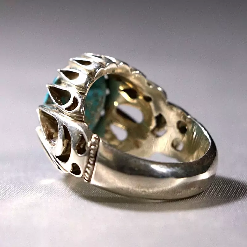 انگشتر فیروزه نیشابوری خوش رنگ با رکاب دست ساز مدل فیلی