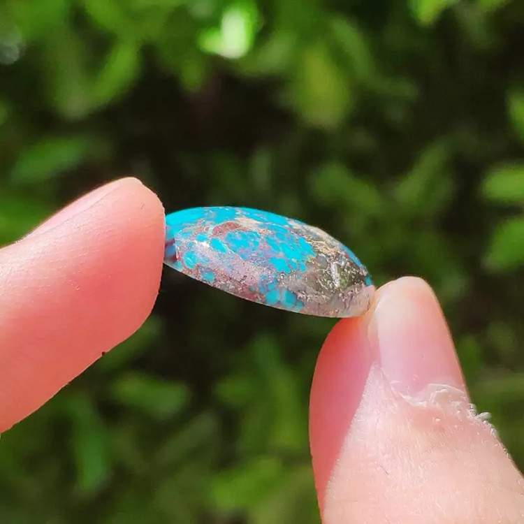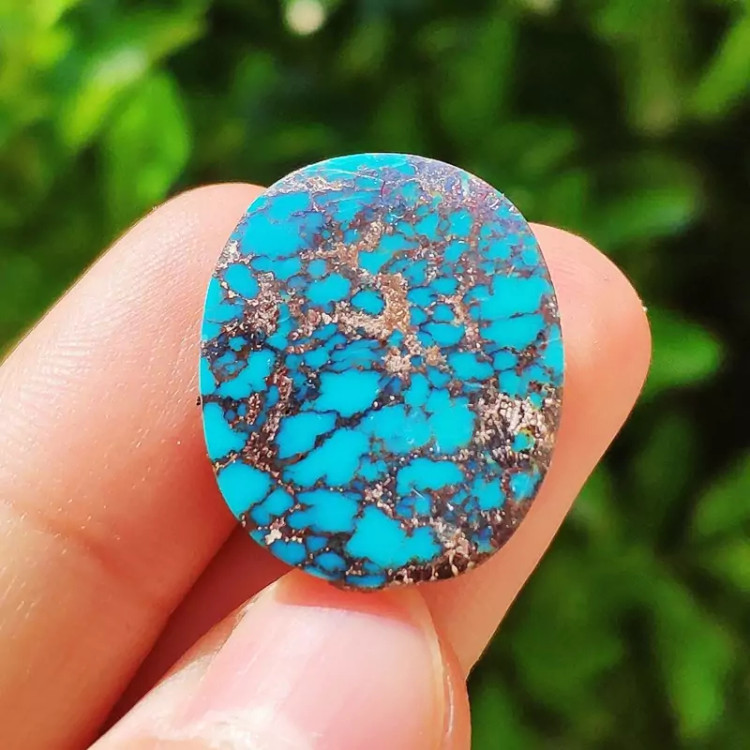 نگین فیروزه نیشابوری بسیار اعلا با رگههای عنکبوتی دوروتراش و رنگ فوق العاده عالی مناسب برای ساخت مدال با نقره یا طلا