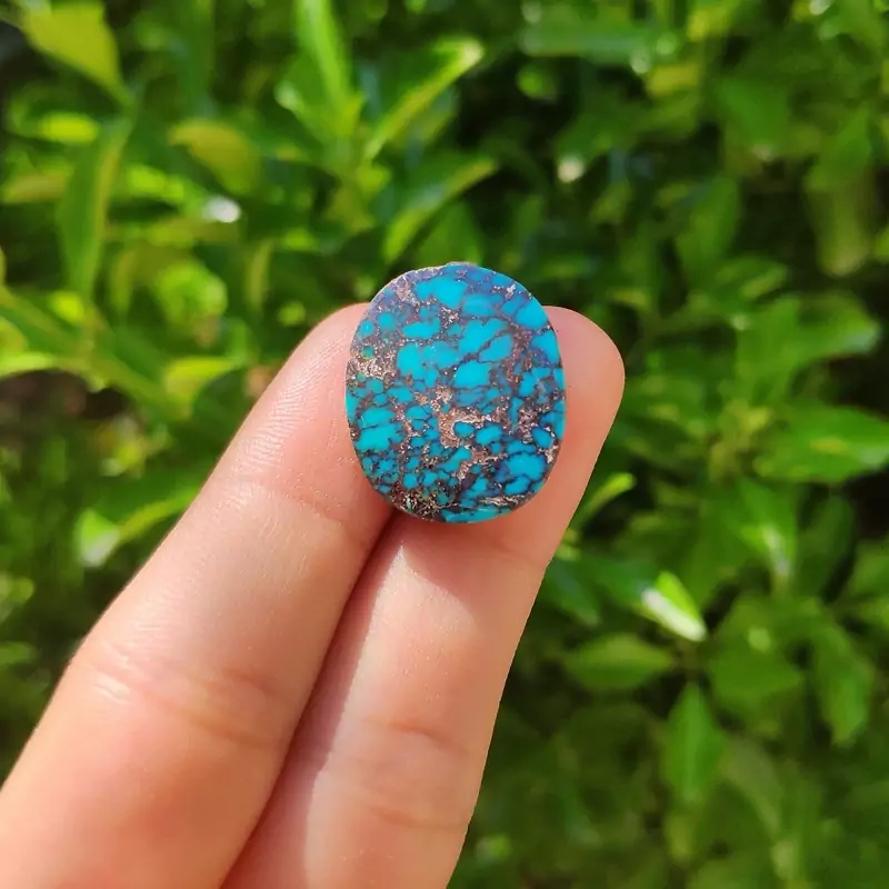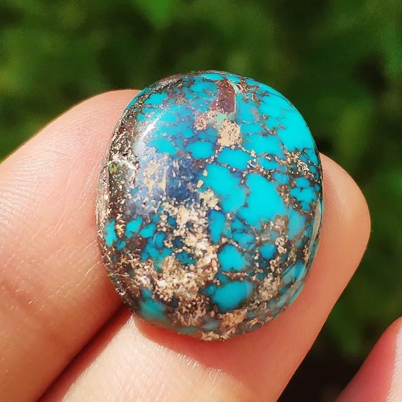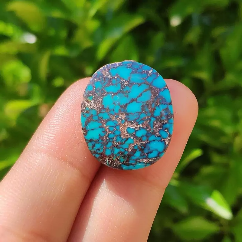 نگین فیروزه نیشابوری بسیار اعلا با رگههای عنکبوتی دوروتراش و رنگ فوق العاده عالی مناسب برای ساخت مدال با نقره یا طلا