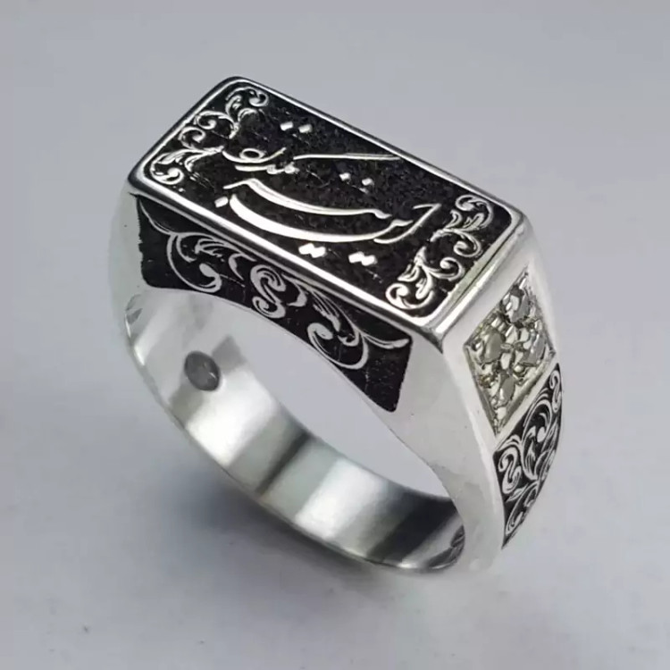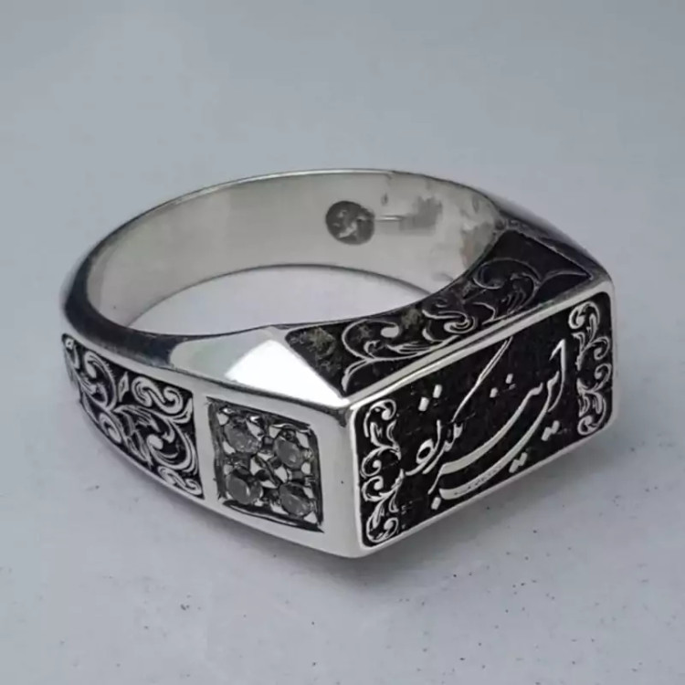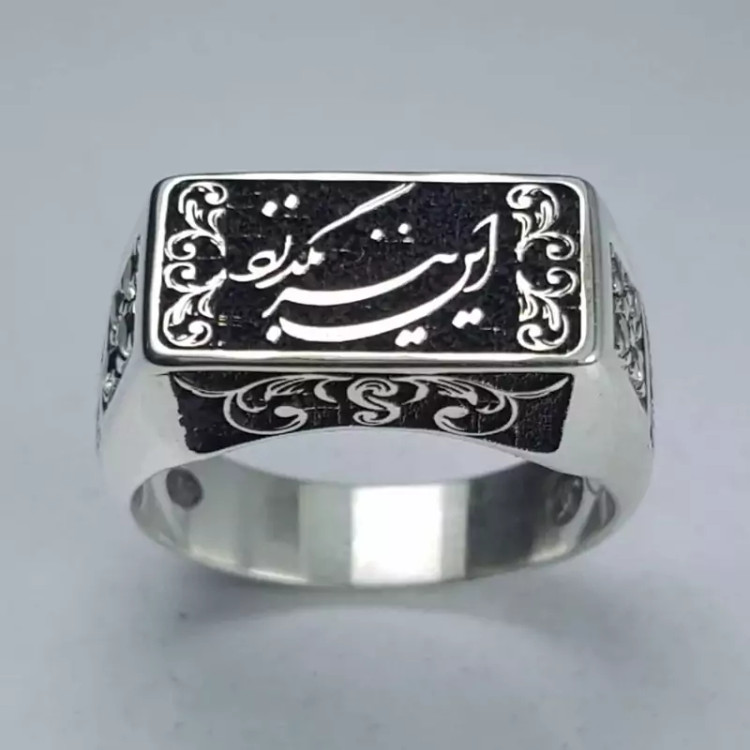انگشتر تمام نقره این نیز بگذرد قلمکاری شده با بالاترین دقت و ظرافت