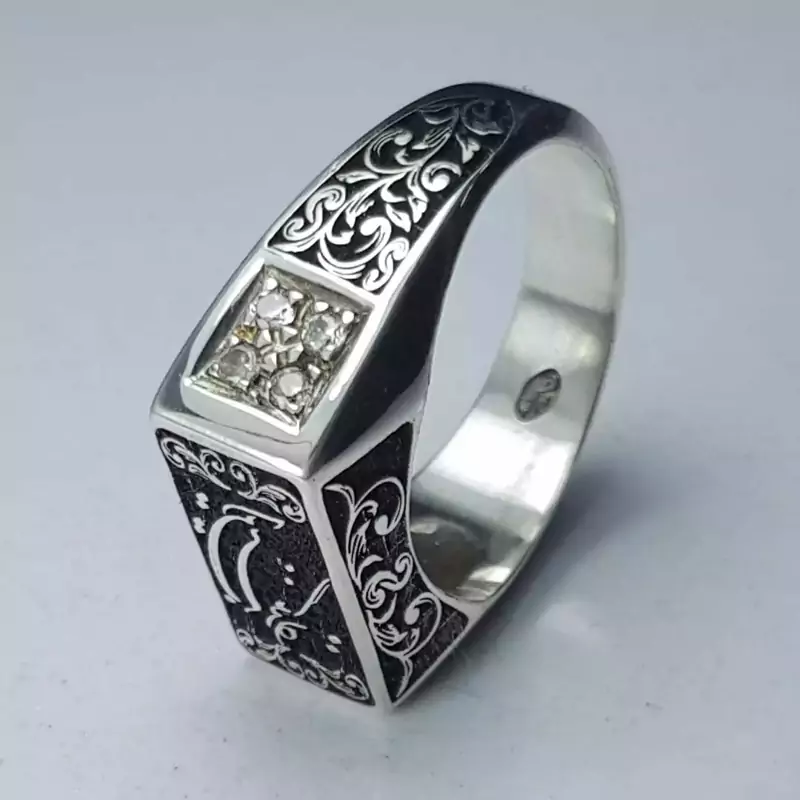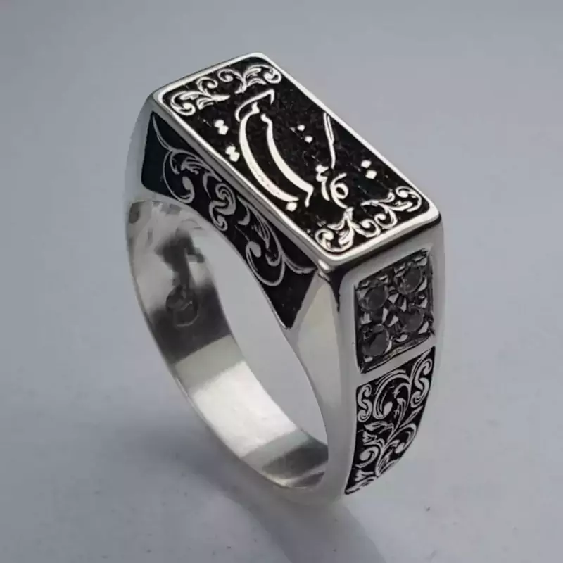 انگشتر تمام نقره این نیز بگذرد قلمکاری شده با بالاترین دقت و ظرافت