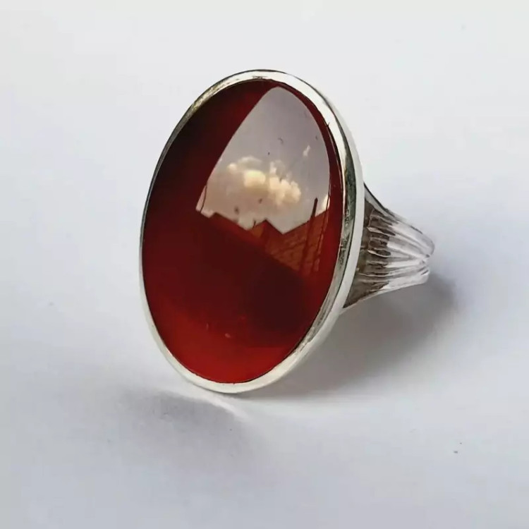 انگشتر عقیق سرخ معدنی اعلا با رکاب نقره عیار بالا