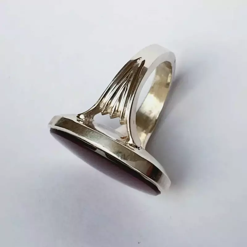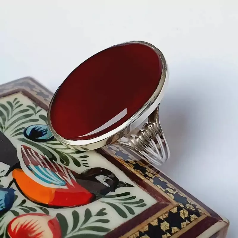 انگشتر عقیق سرخ معدنی اعلا با رکاب نقره عیار بالا