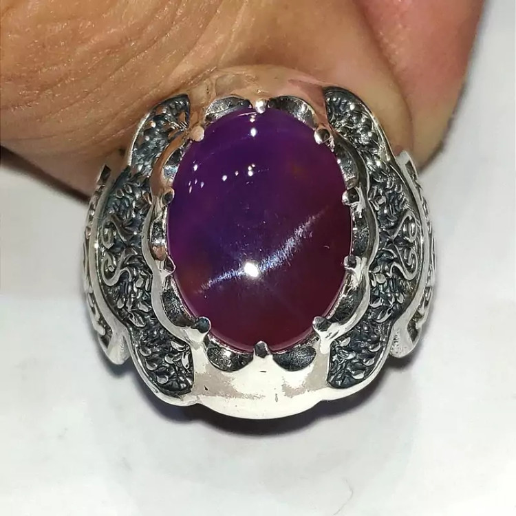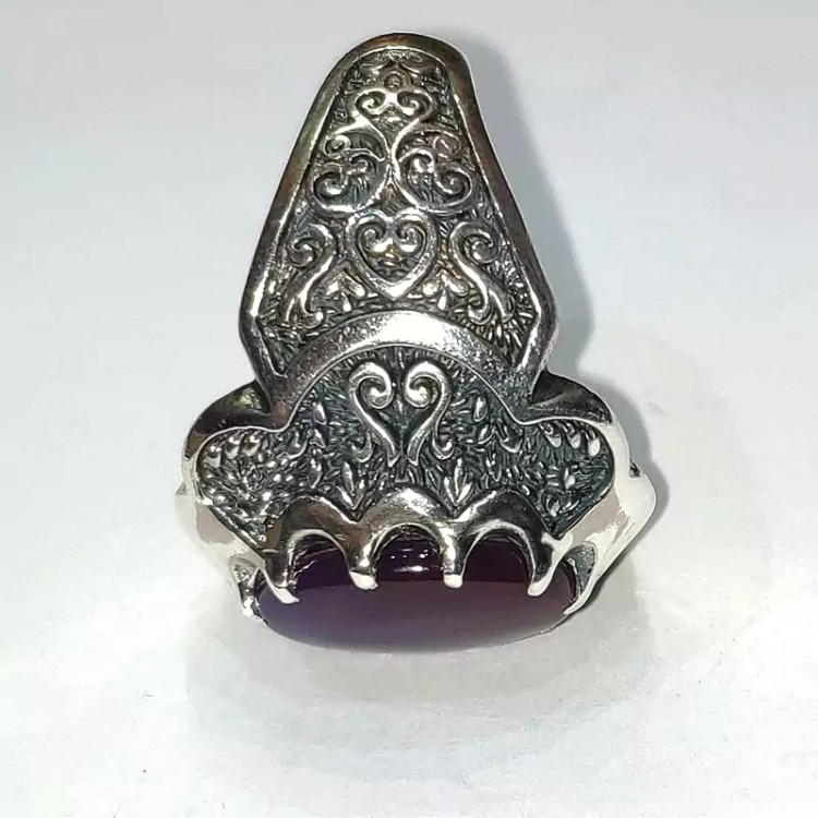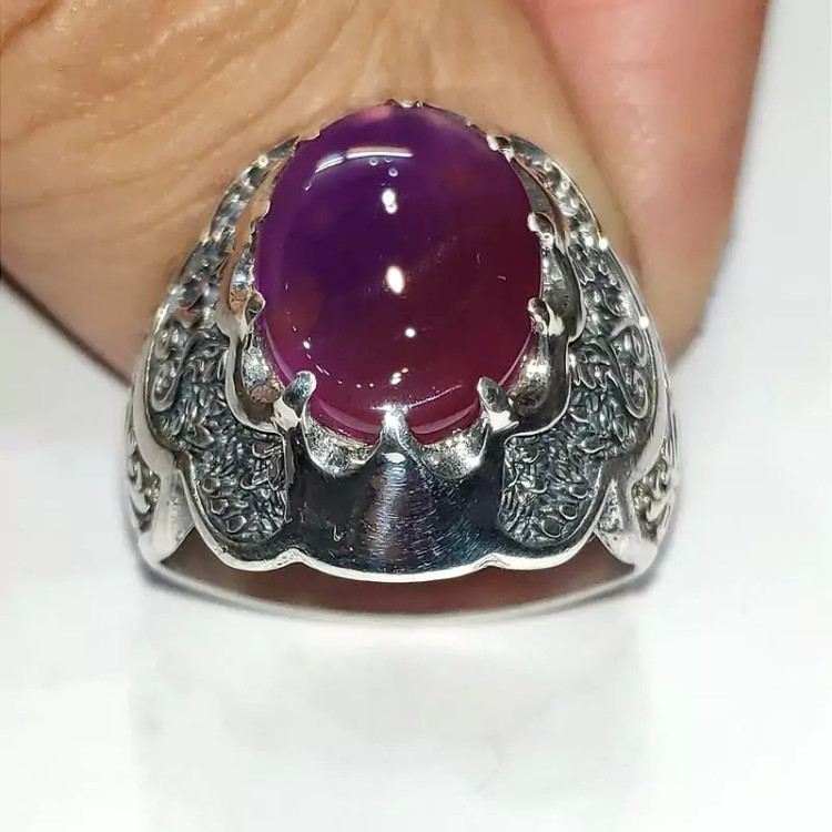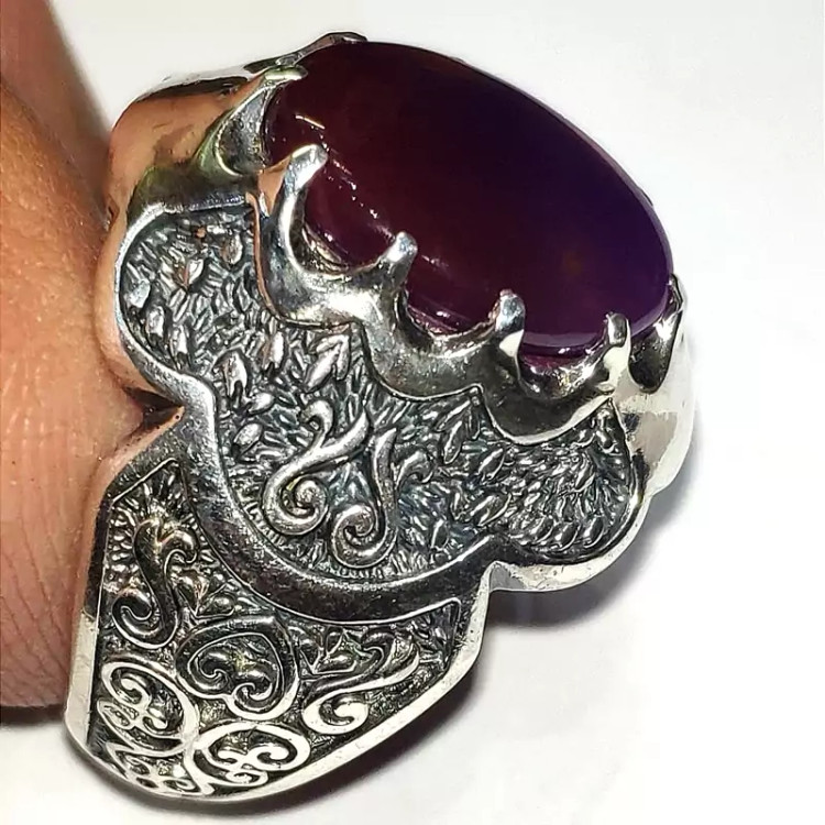 انگشتر عقیق یمنی سوسنی بسیار زیبا و خوش قواره با رکاب نقره عیار 925