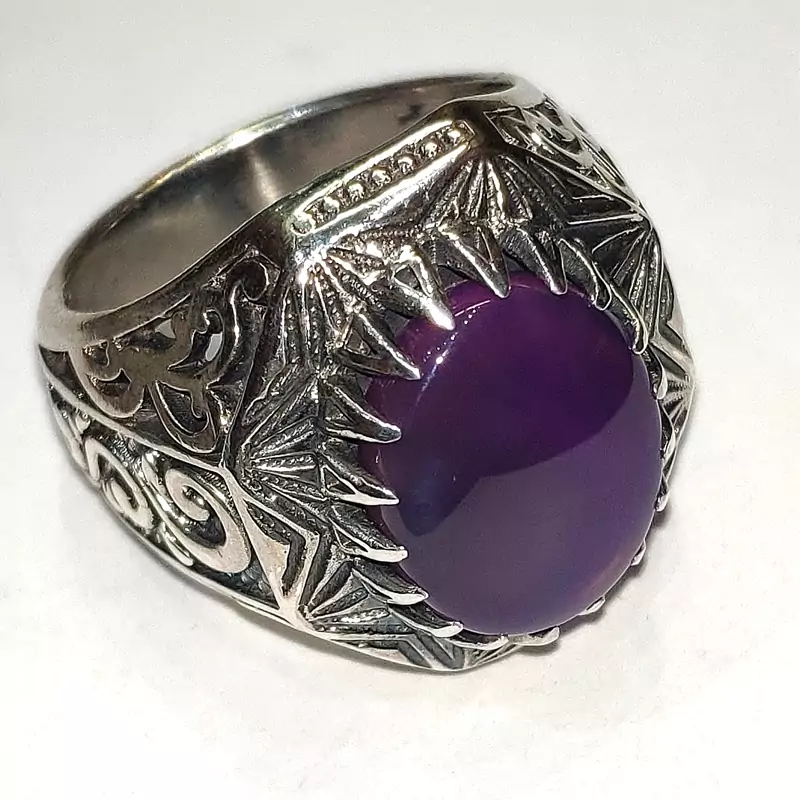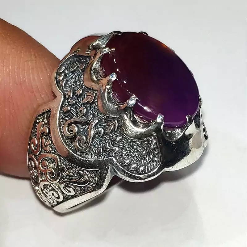 انگشتر عقیق یمنی سوسنی بسیار زیبا و خوش قواره با رکاب نقره عیار 925