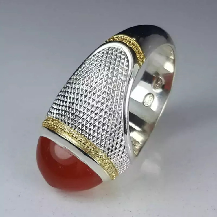 انگشتر عقیق یمنی پرتقالی با رکاب دست ساز سفارشی