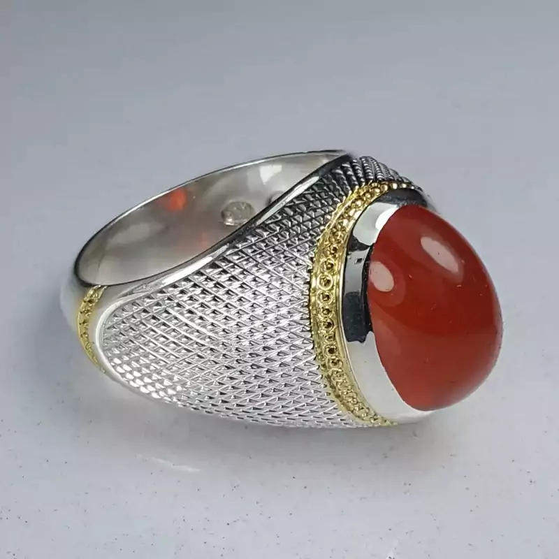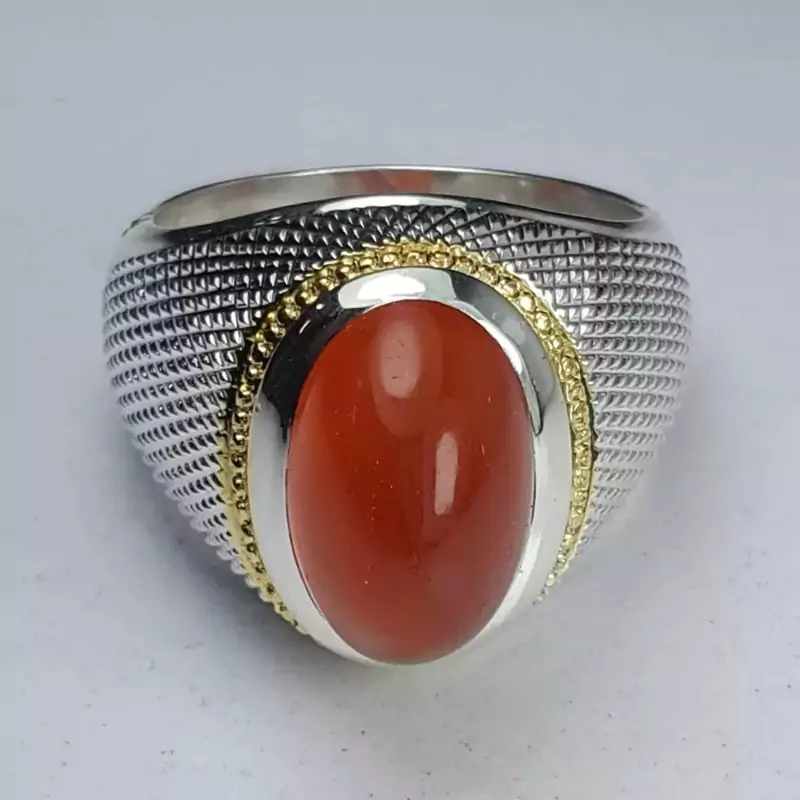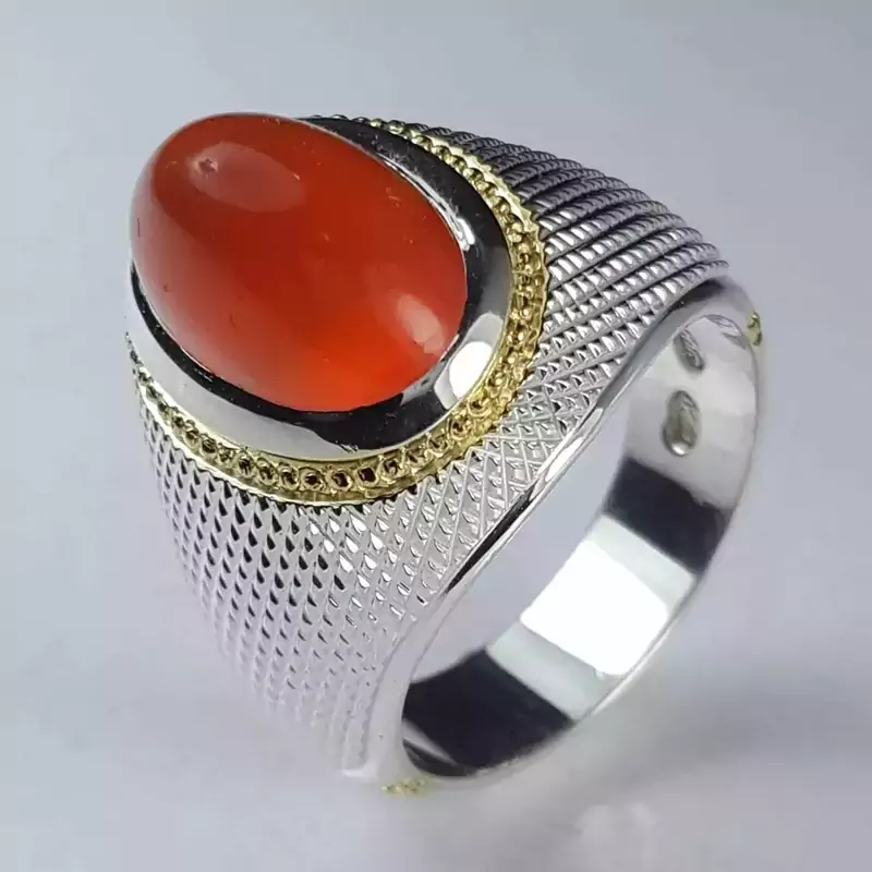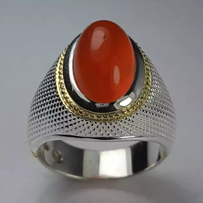 انگشتر عقیق یمنی پرتقالی با رکاب دست ساز سفارشی