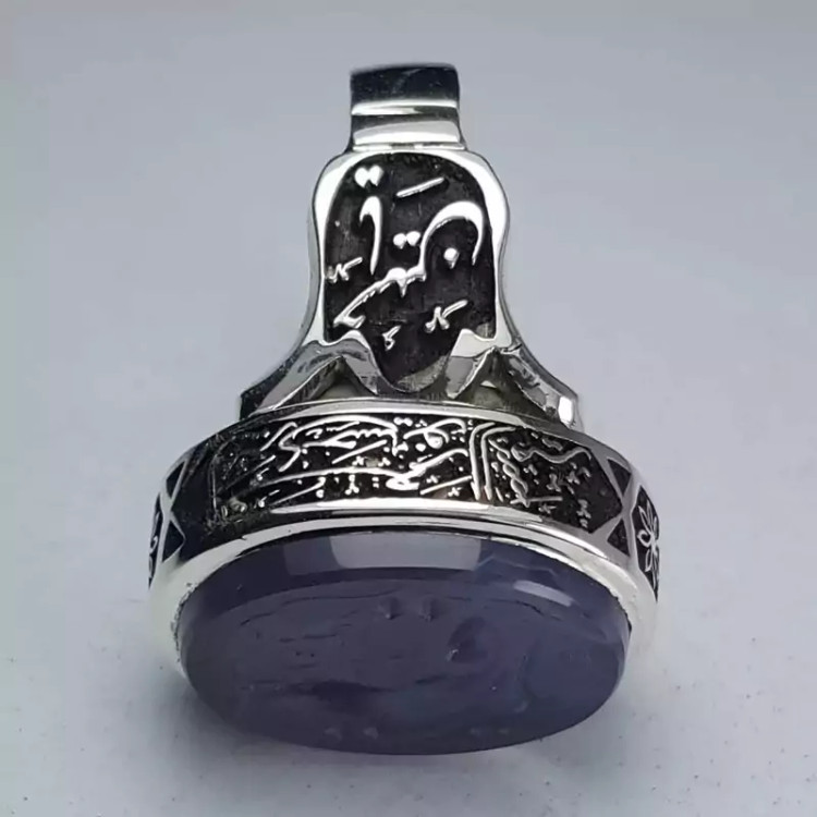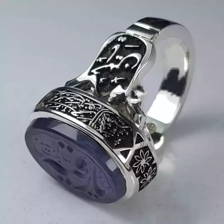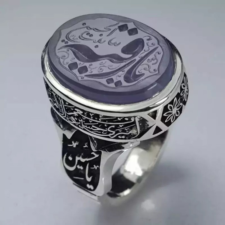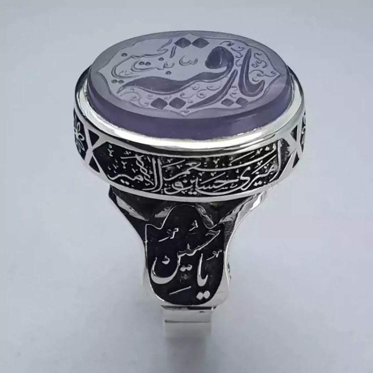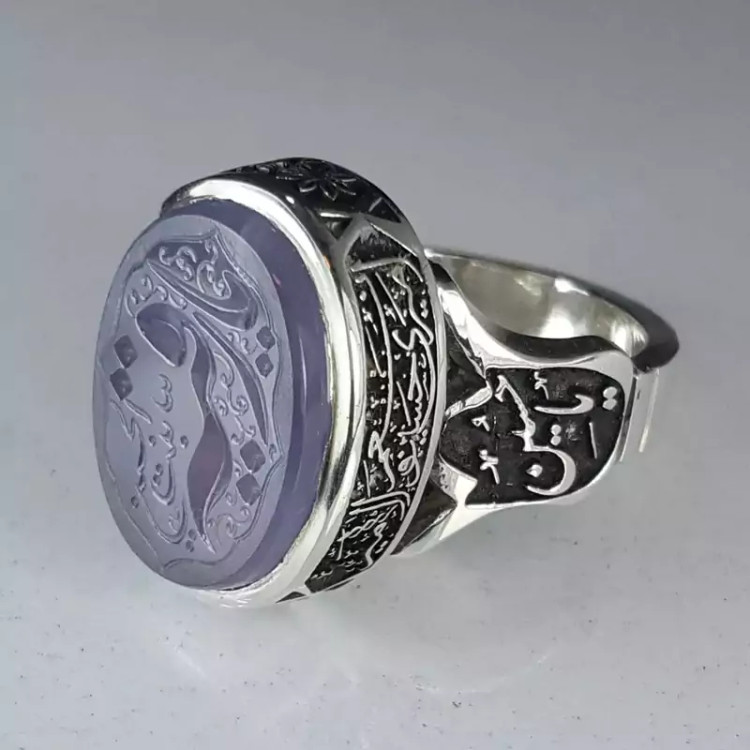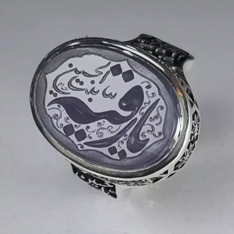 انگشتر عقیق سوسنی یمنی اعلا ، حکاکی شده با دست و با رکاب دست ساز سفارشی و قلمکاری بسیار دقیق و منظم