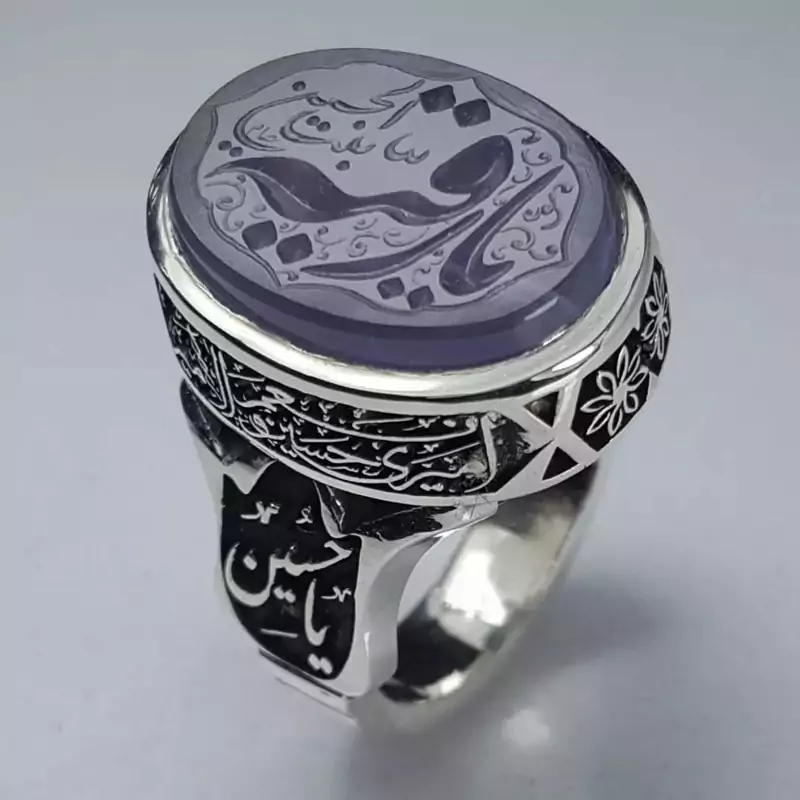انگشتر عقیق سوسنی یمنی اعلا ، حکاکی شده با دست و با رکاب دست ساز سفارشی و قلمکاری بسیار دقیق و منظم