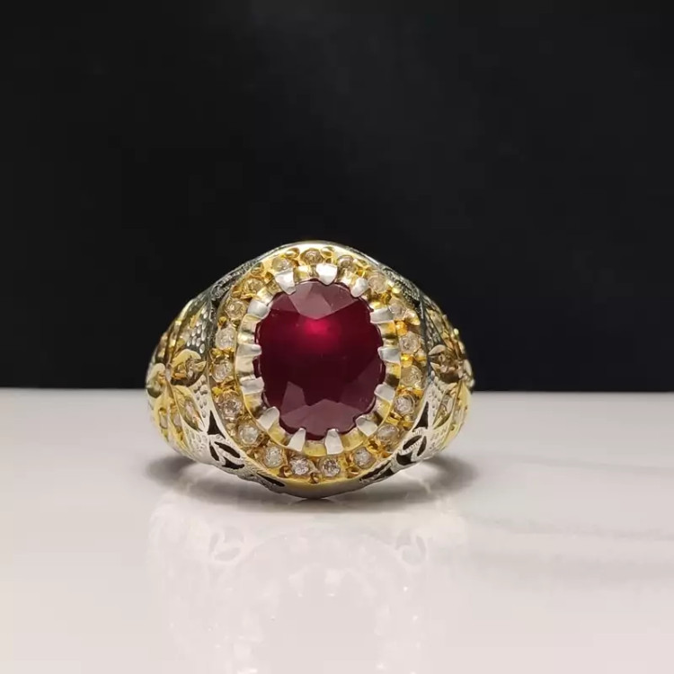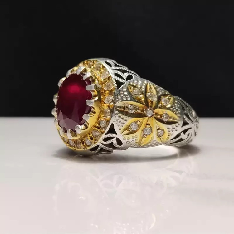 انگشتر یاقوت سرخ آفریقایی ، بسیار زیبا ، جذاب و کلکسیونی ، رکاب دست ساز سفارشی دور برلیان