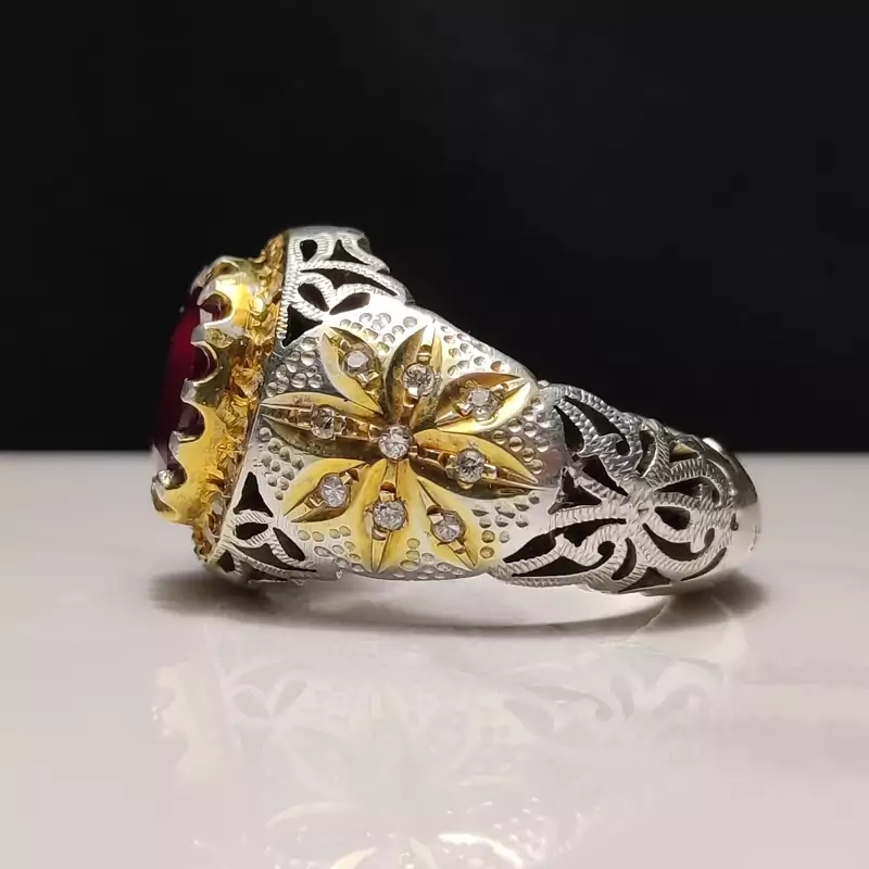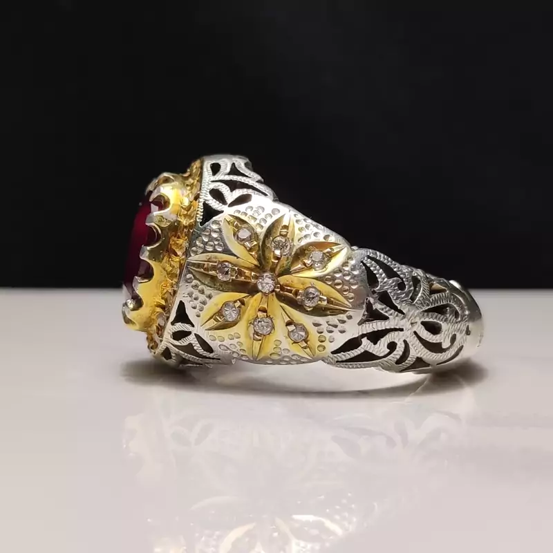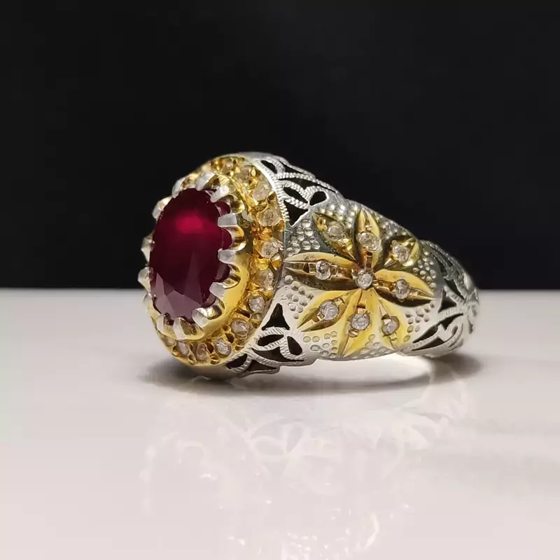 انگشتر یاقوت سرخ آفریقایی ، بسیار زیبا ، جذاب و کلکسیونی ، رکاب دست ساز سفارشی دور برلیان