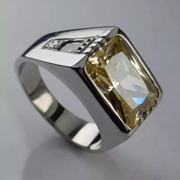 انگشتر زیرکن طلایی اسپرت با رکاب دست ساز سفارشی مدل فیلی و مخراجکاری در بدنه رکاب