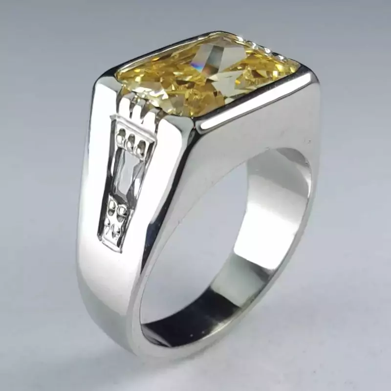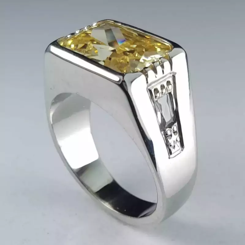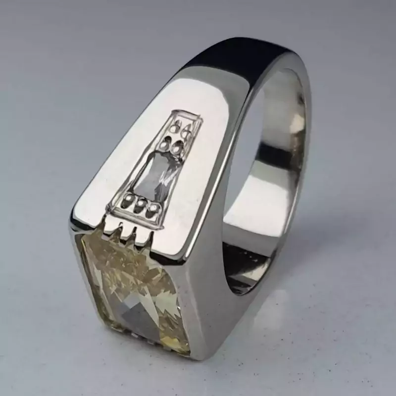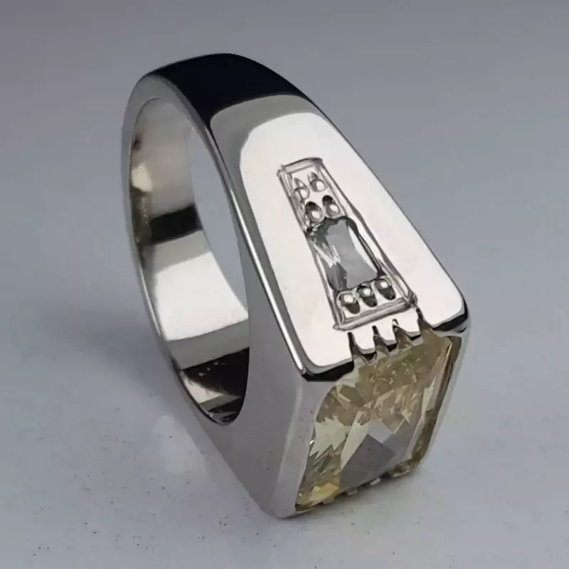 انگشتر زیرکن طلایی اسپرت با رکاب دست ساز سفارشی مدل فیلی و مخراجکاری در بدنه رکاب