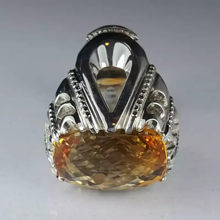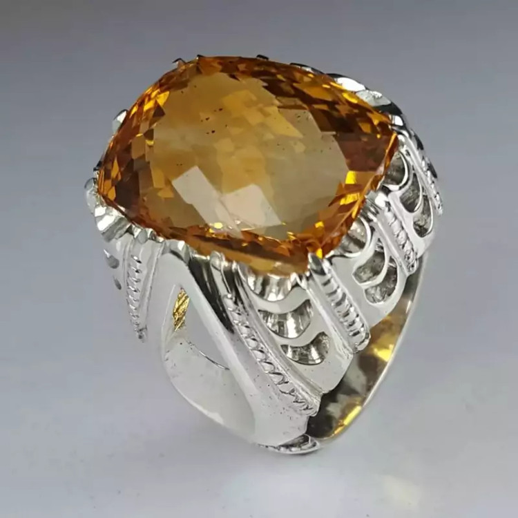 انگشتر سیترین طلایی با رکاب دست ساز فوق العاده با کیفیت و کلکسیونی