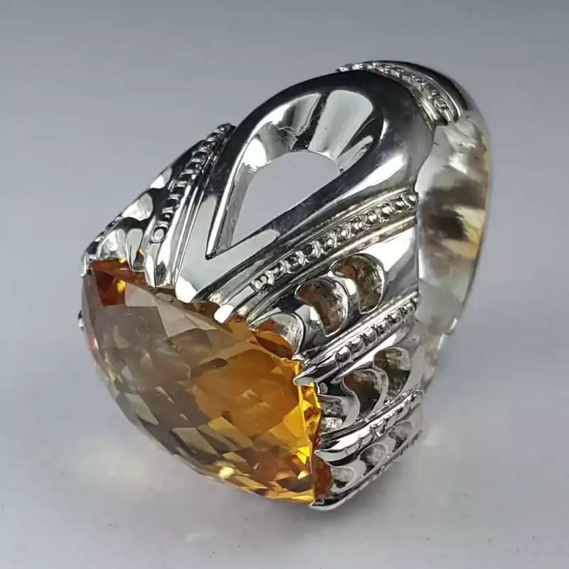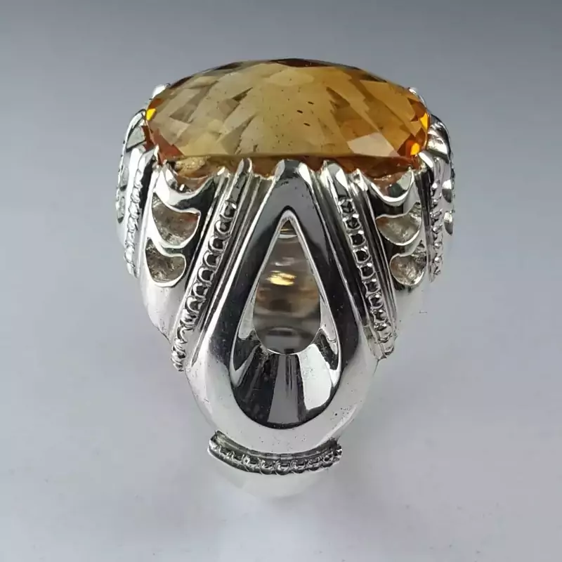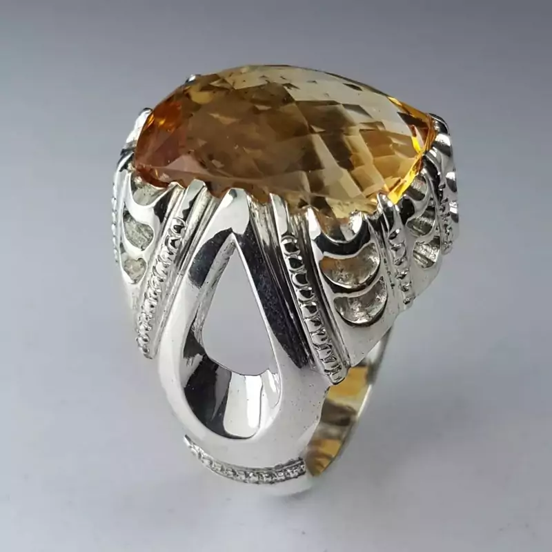 انگشتر سیترین طلایی با رکاب دست ساز فوق العاده با کیفیت و کلکسیونی