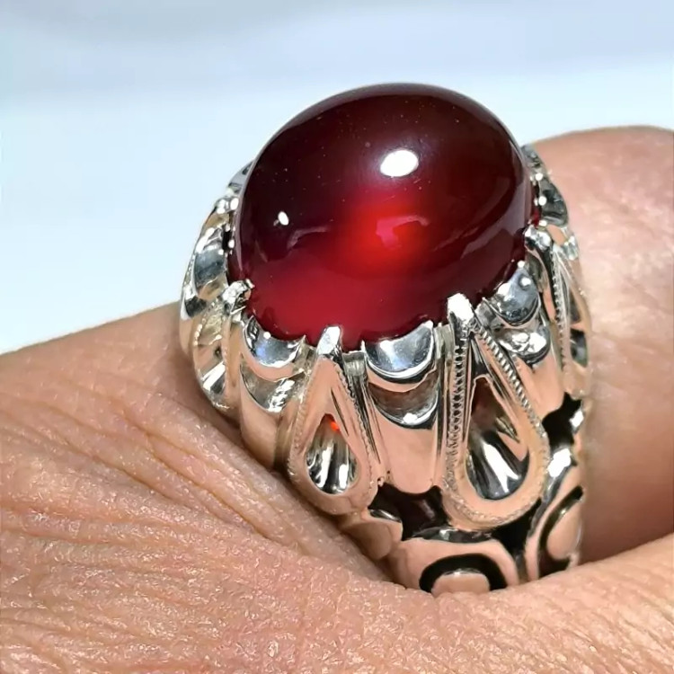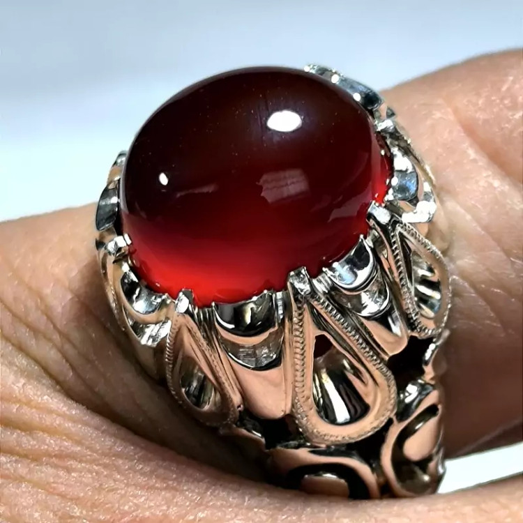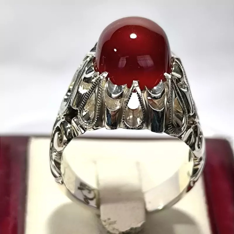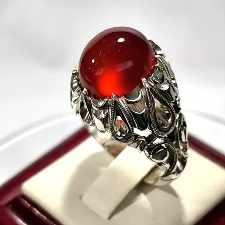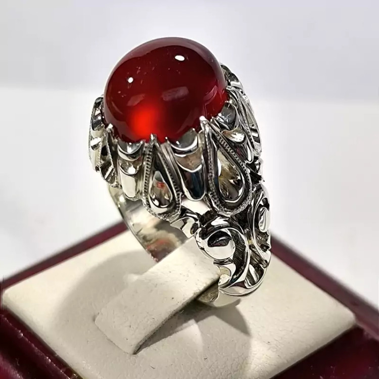 انگشتر عقیق سرخ معدنی با رکاب دست ساز سفارشی