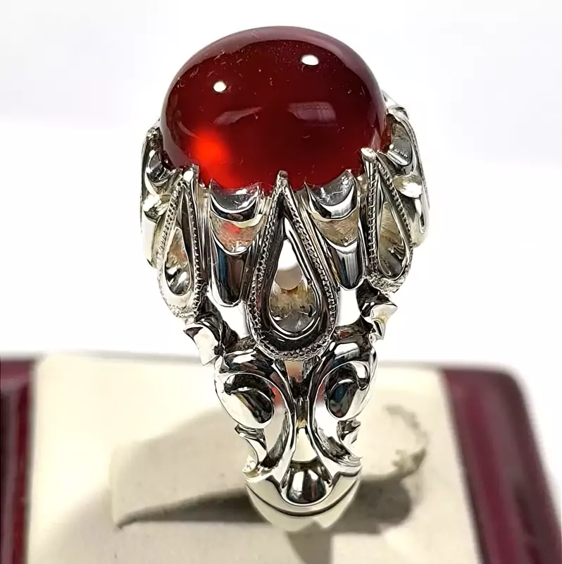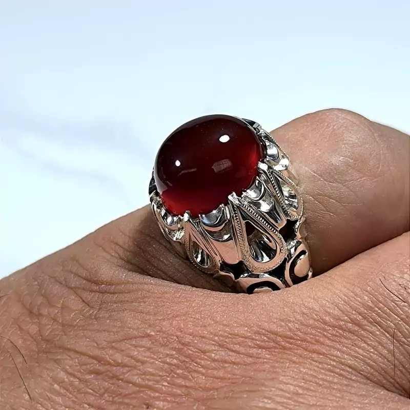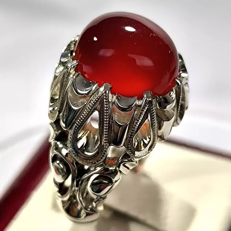 انگشتر عقیق سرخ معدنی با رکاب دست ساز سفارشی