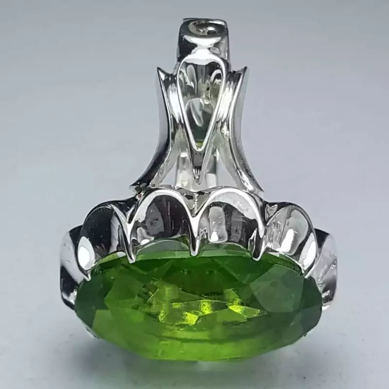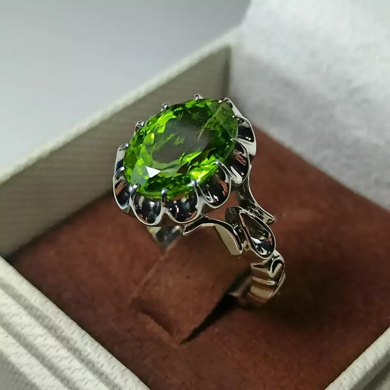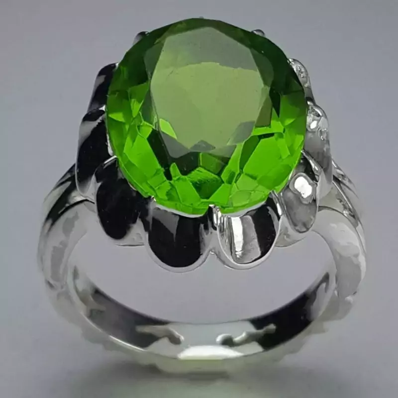انگشتر کوارتز سبز اعلا با رکاب دست ساز سفارشی و تراش دقیق و منظم